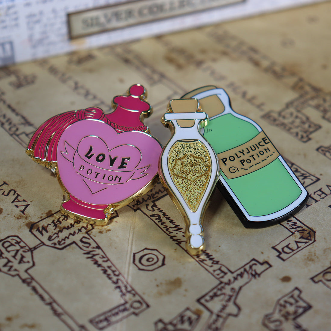 Potion pins for a Potterhead! Containing Polyjuice Potion, Love Potion and Felix Felicis, otherwise known as Liquid Luck, this trio of limited edition enamel pin badges would make a thoughtful gift for a fan of Harry Potter and the bewitching brews.