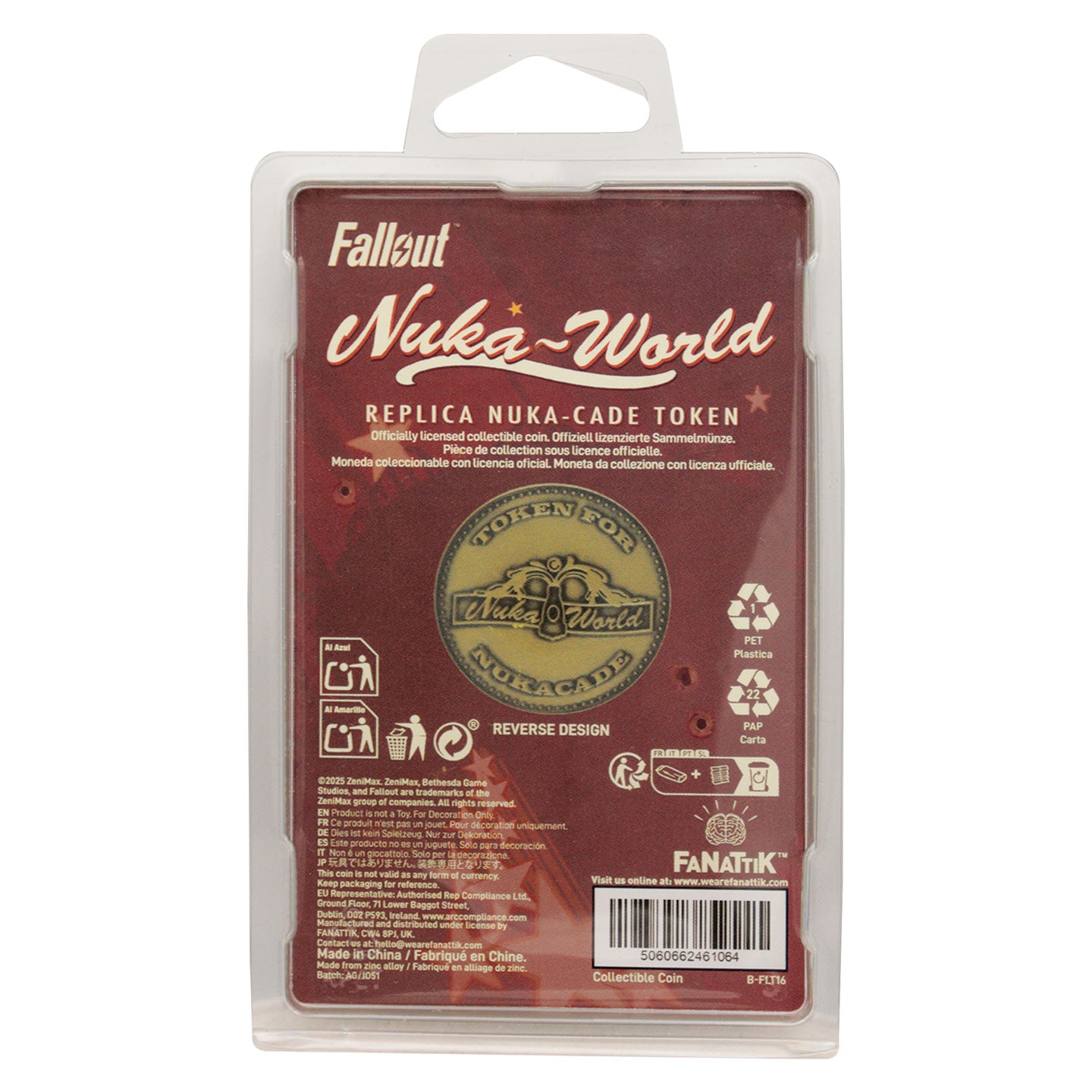 Head to the Nukacade and play all the arcade games you want with this replica Nuka-Cade Token! As featured in Fallout 4, this Replica Token is embossed on both sides. This coin is 38mm in diameter and supplied within a protective acrylic cup within its display pack.